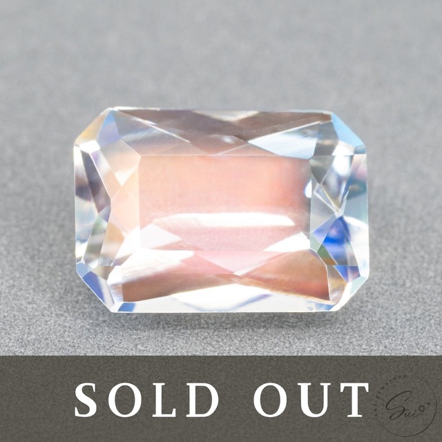 このレインボームーンストーンは、クリアな地色の中に、角度を変えるたびに現れる虹色のシラー効果が最大の魅力。