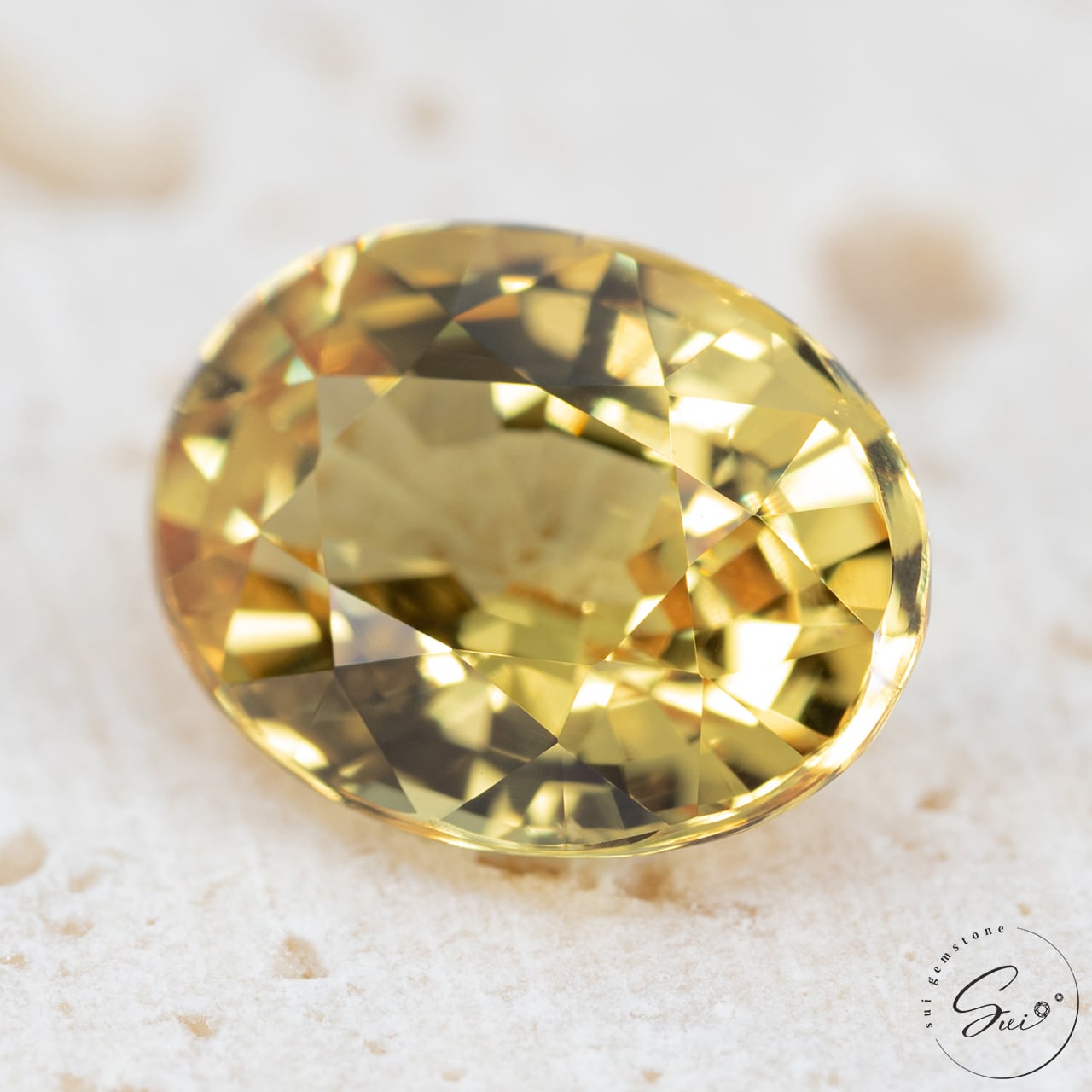 1.57ctのスリランカ産イエローサファイア、天然非加熱オーバルカットです。